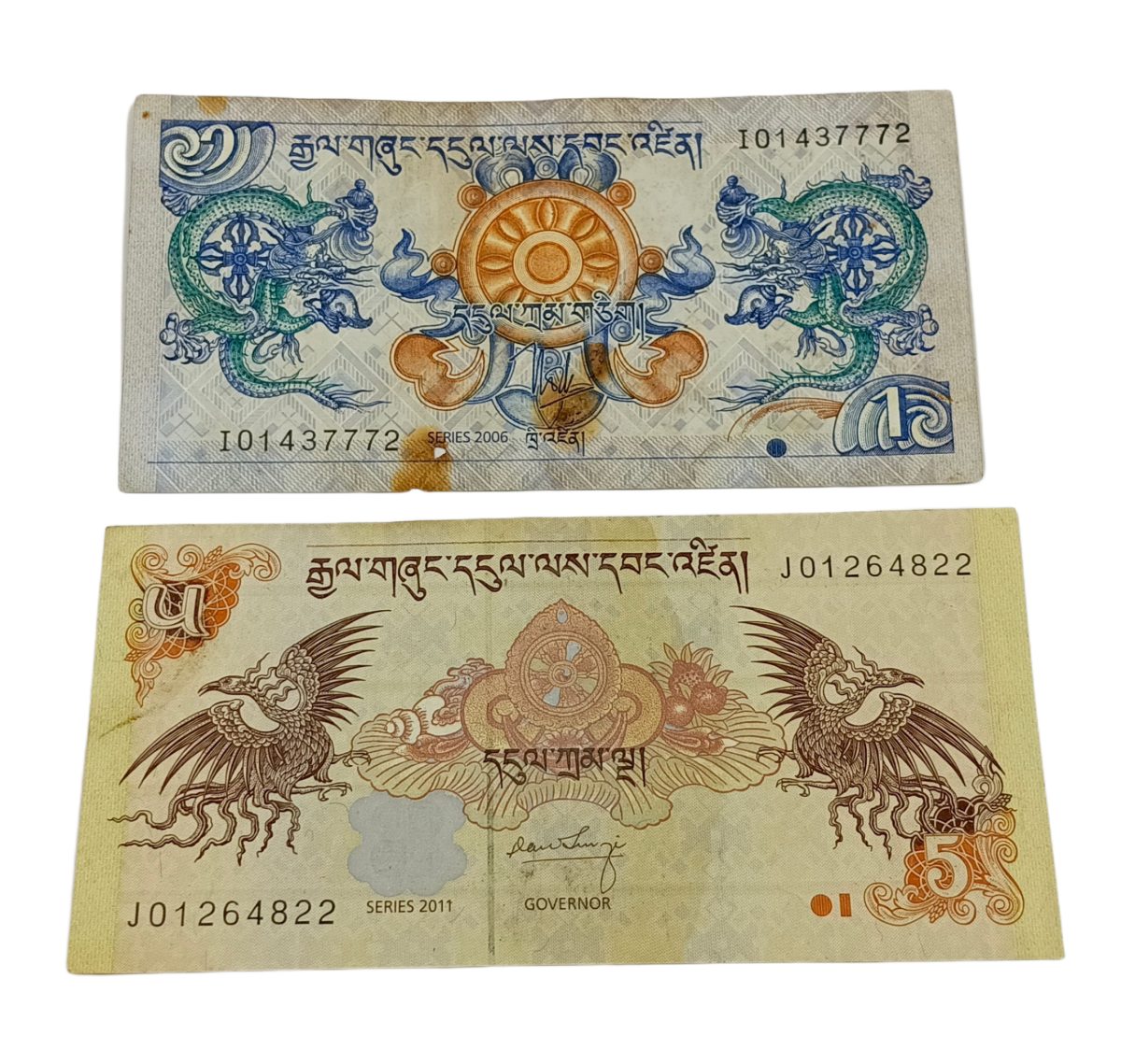 BHUTAN ONE NGULTRUM and FIVE NGULTRUM Set 2 Notes are in Collectable Grades.