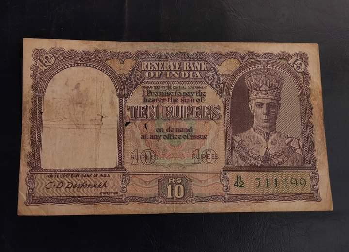 BRITISH INDIA 🇮🇳 GEORGE VI RUPPE 10 CD deshmukh portrait of George VI to right. CONDITION.as image Same and similar pic. Available