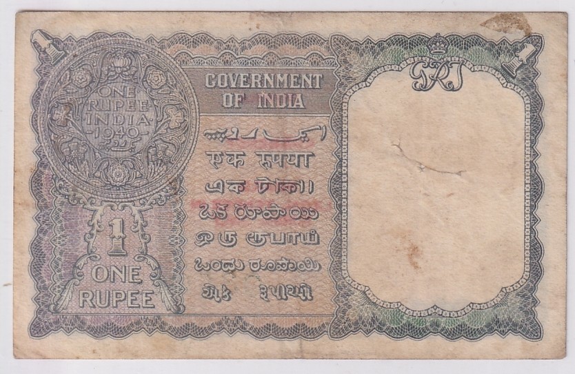 British India Burma Overprint 1 Rupee 1940 CE Jones Signature Very Fine Note #9
