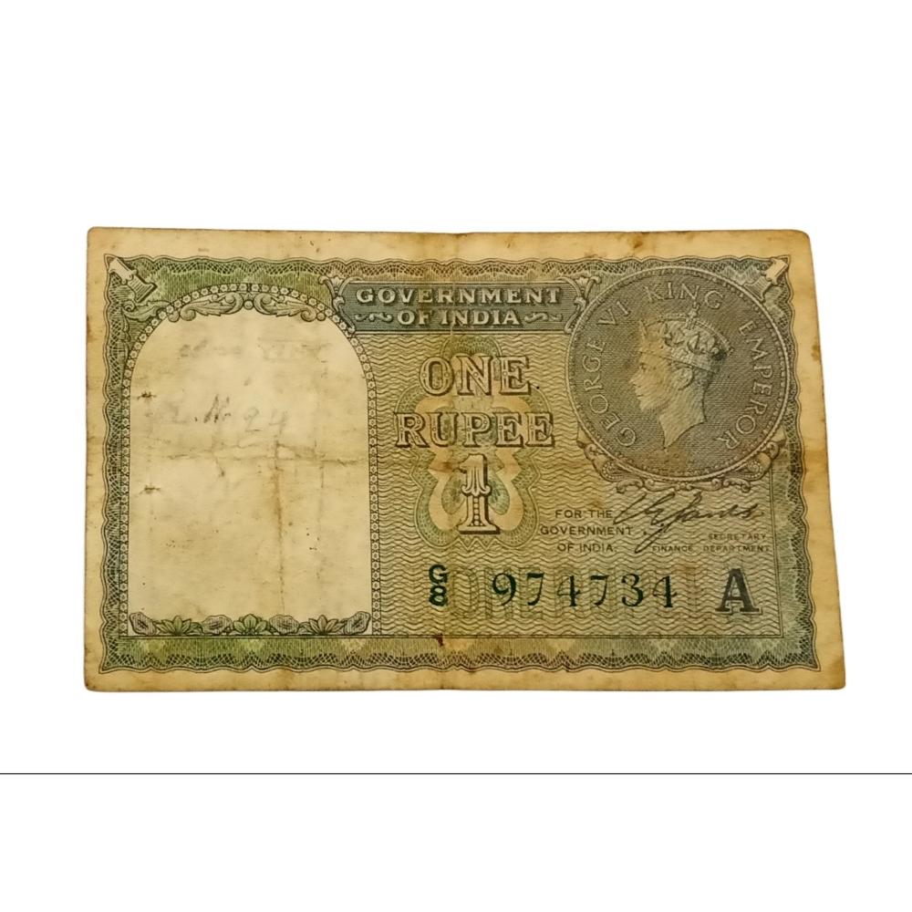 British India One Rupee Year 1940 C.JONES Green Serial G Prefix V. SCARE Collectable Grade.