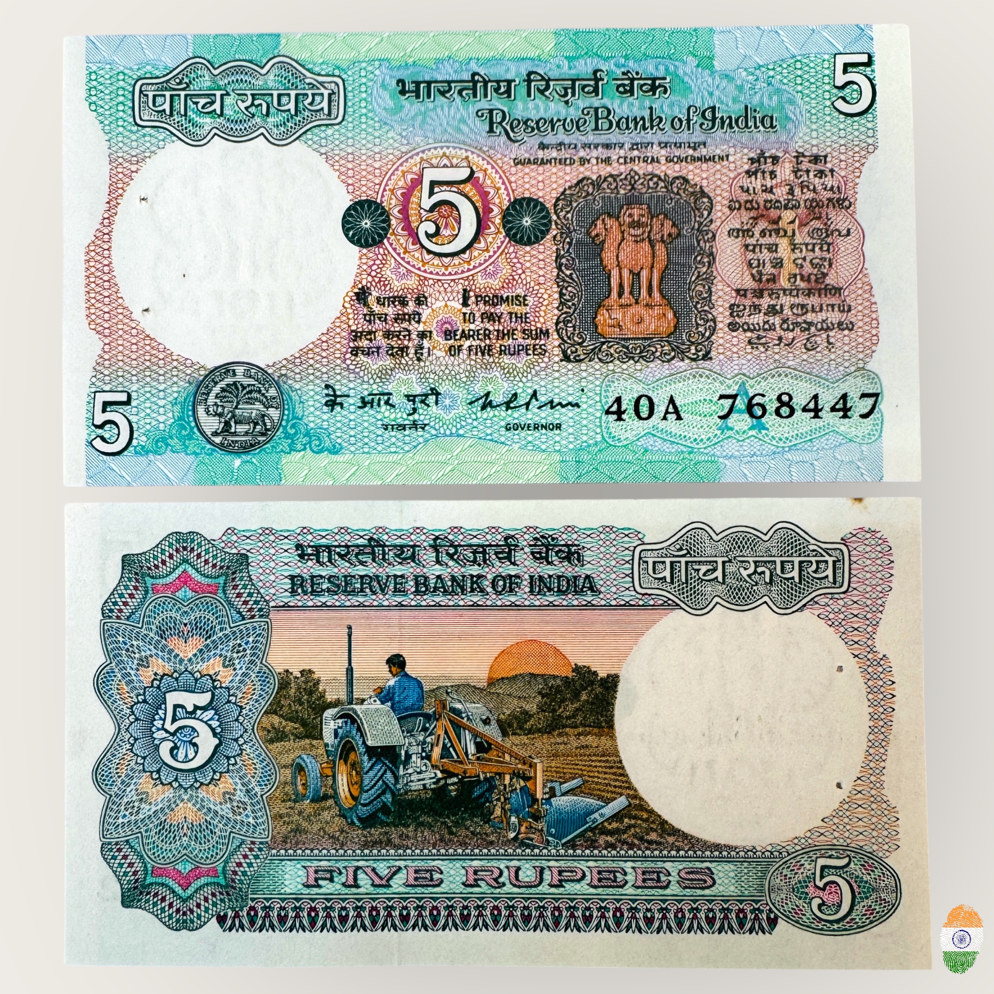 C 17 Rs 5 India Banknote Signature series Signed by K R Puri Inset A 1977 Issue Unique and Rare