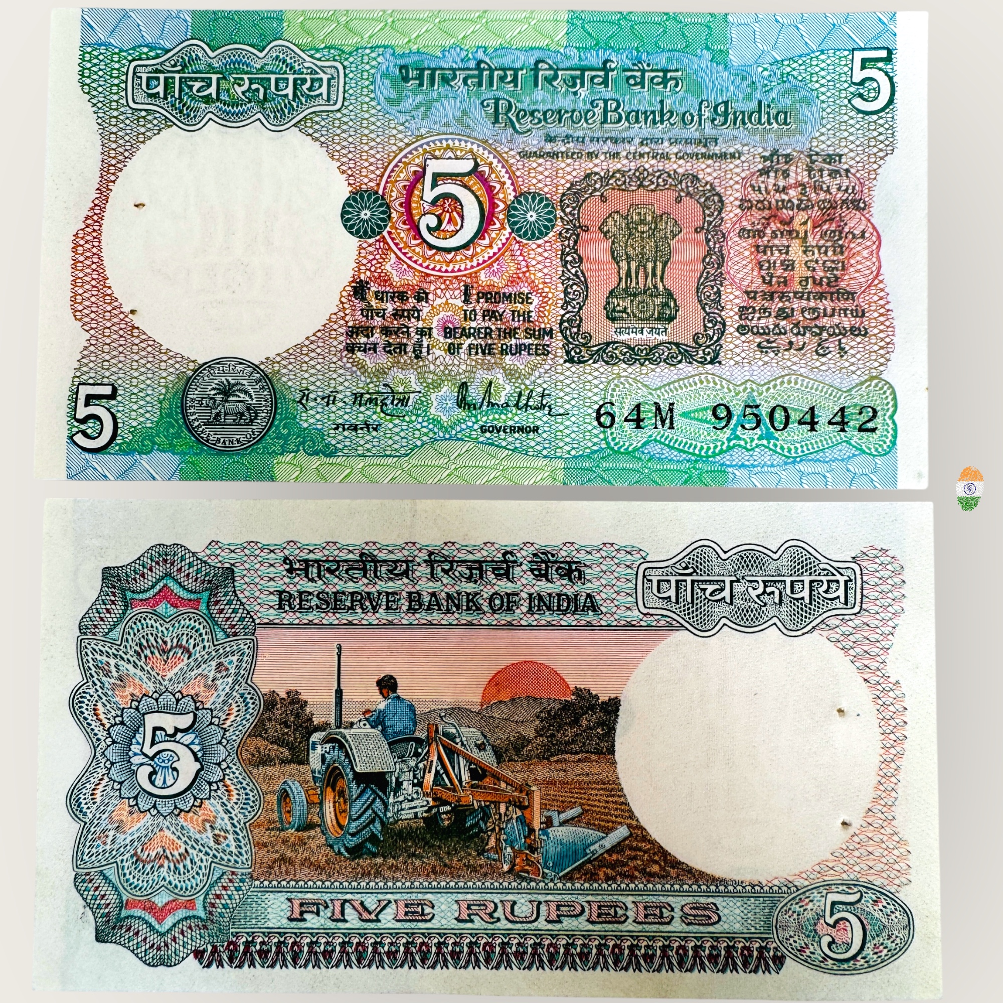 C 30 Rs 5 India Banknote Signature series Signed by R N Malhotra Inset A 1985 to 90 Issue Unique and Rare