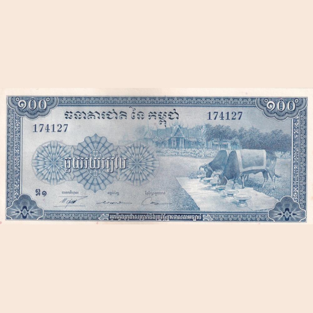 Cambodia 100 Riels 1955-1972 Old Issue Rare Unc Note