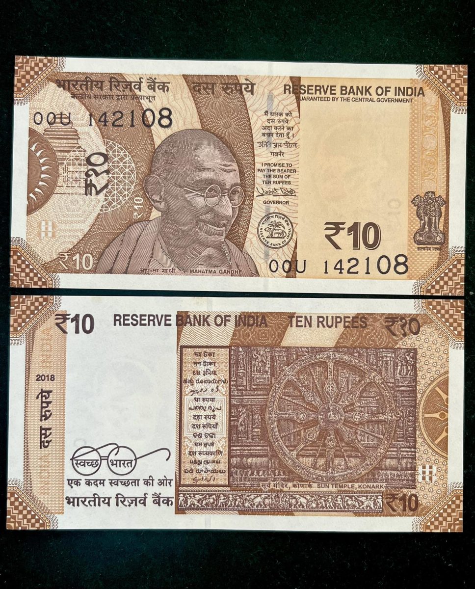 D133 Rs 10 India Banknote Signature series Signed by URJIT R PATEL Inset PLAIN 2018 Issue