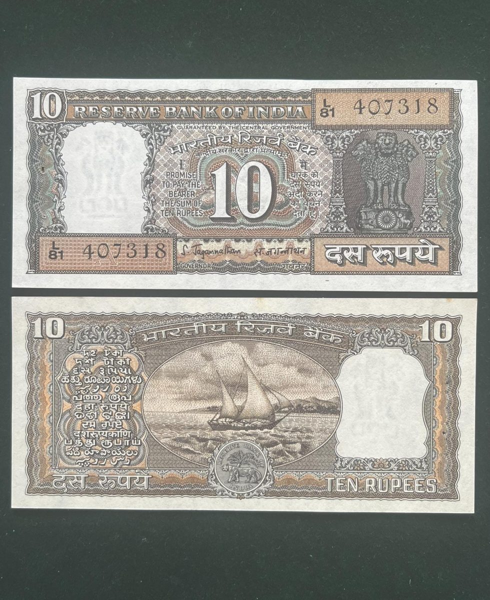 D15 Rs 10 India Banknote Signature series Signed by S Jagannathan Inset PLAIN 1970 to 75 Issue