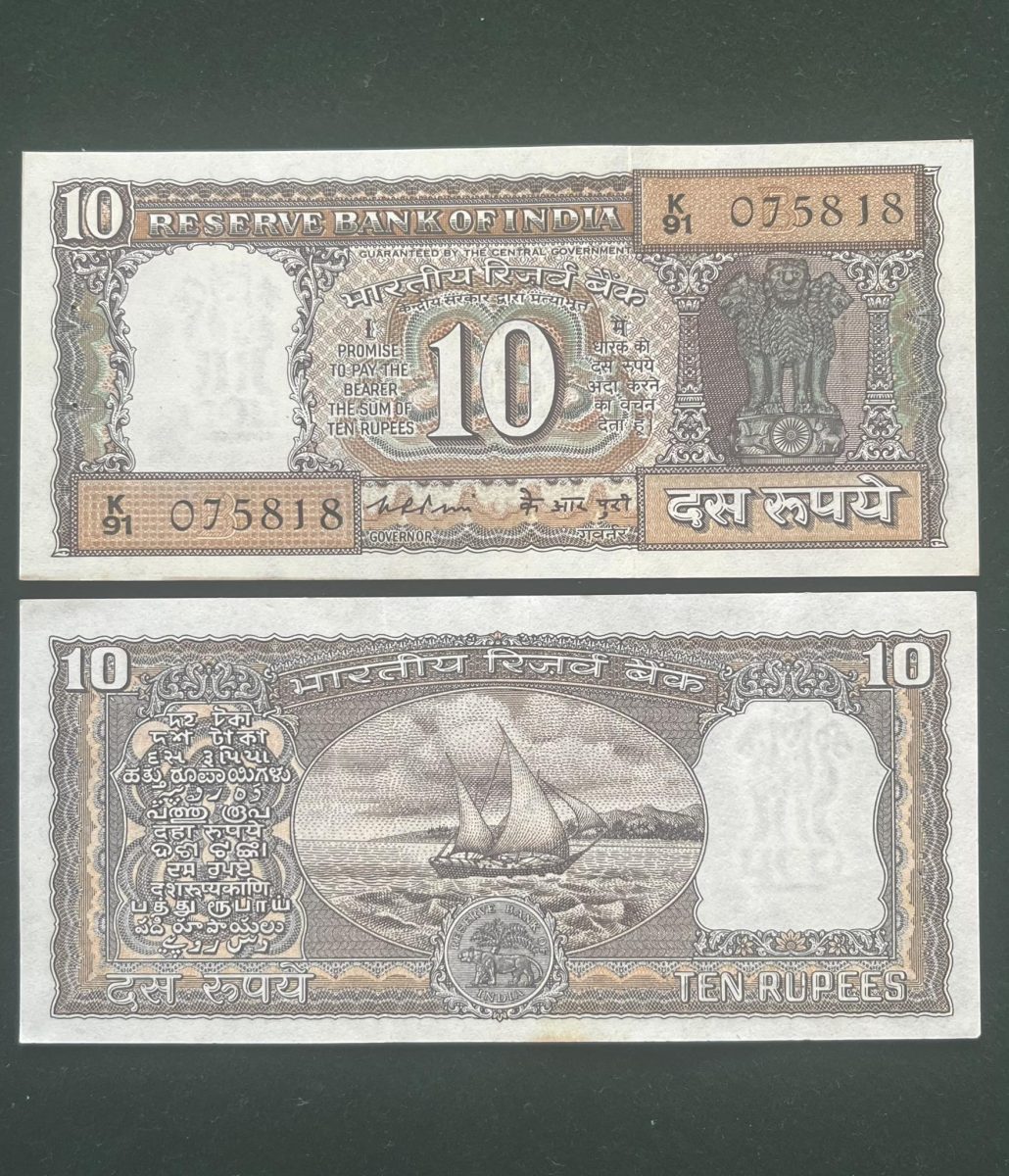 D18 – Rs 10 India Banknote Signature series Signed by K.R.PURI Inset B 1975-77 Issue