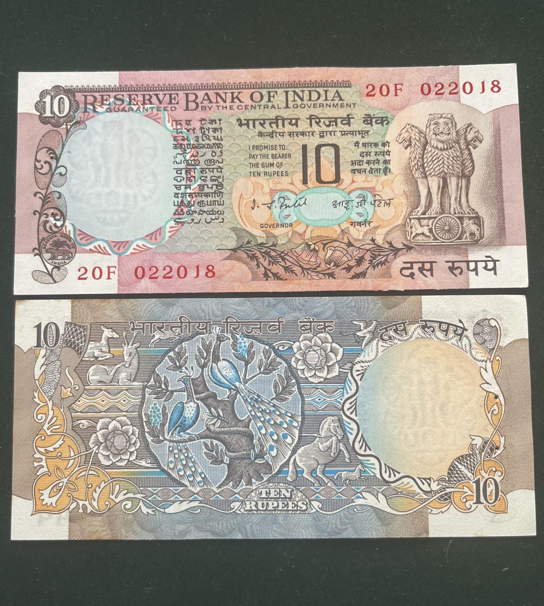D35 Rs 10 India Banknote Signature series Signed by I G Patel Inset A 1977 to 82 Issue
