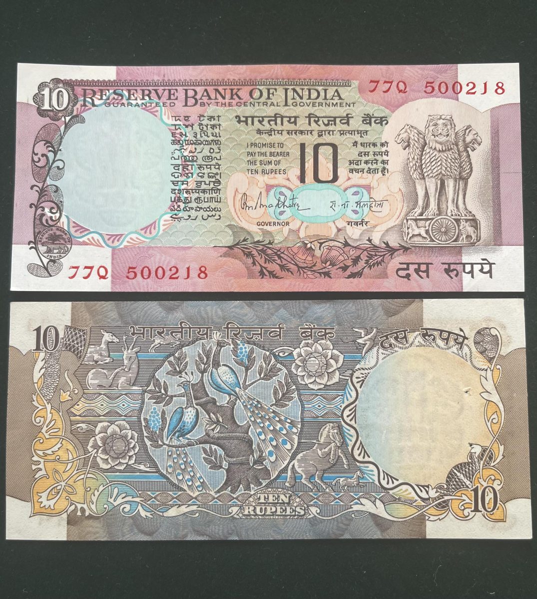 D38 – Rs 10 India Banknote Signature series Signed by R.N.MALHOTRA Inset C 1985-90 Issue