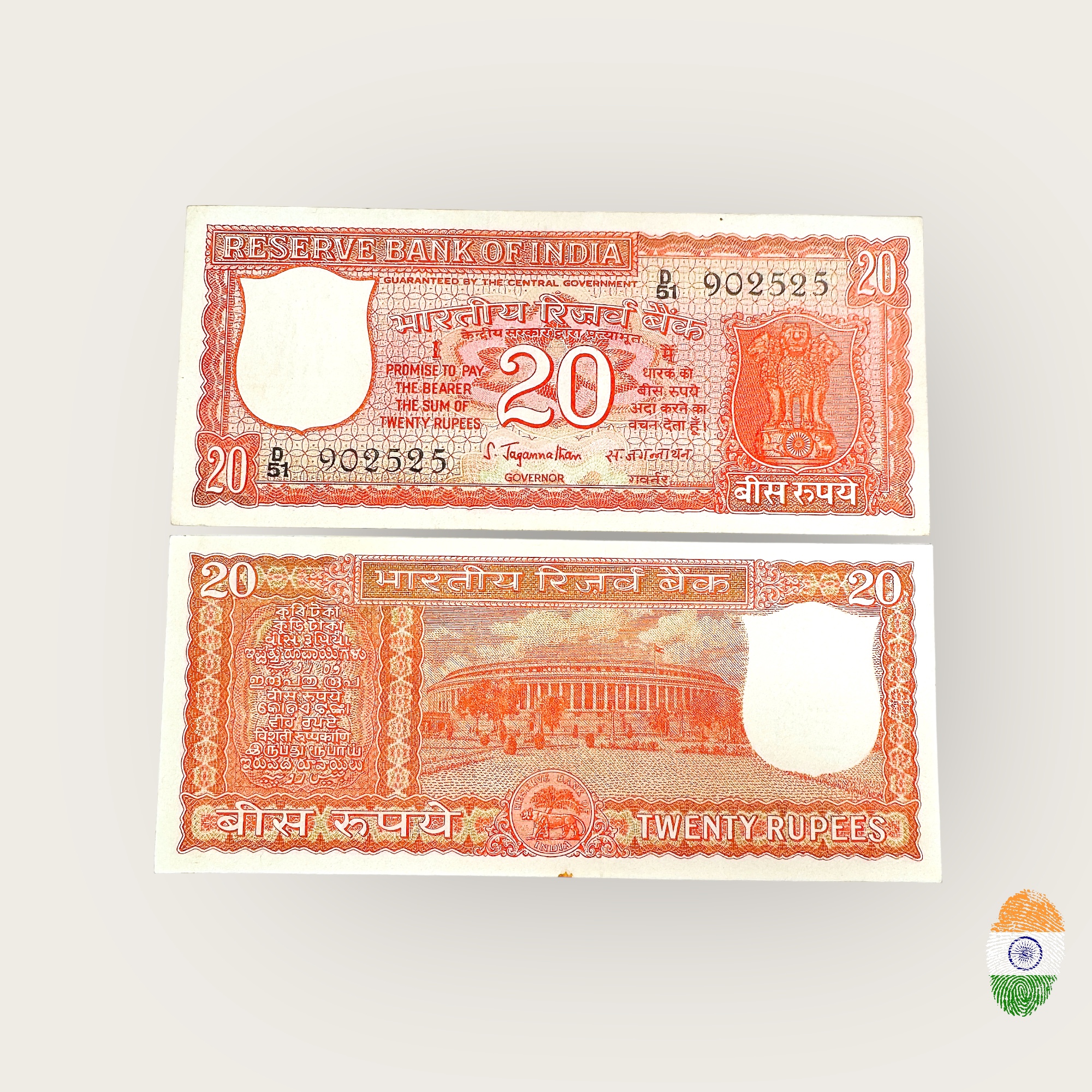 E 3 Rs 20 India Banknote Signature series Signed by S Jagannathan Inset Plain 1972 issue Unique and Rare