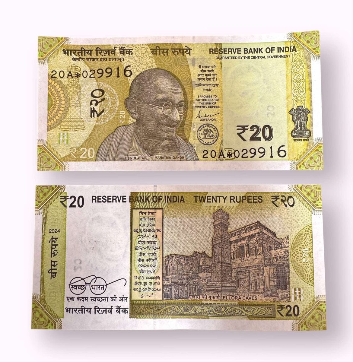 ES 77 Rs 20 India Banknote Inset B Star Issue 2024 Prefix 20A Unique and Rare