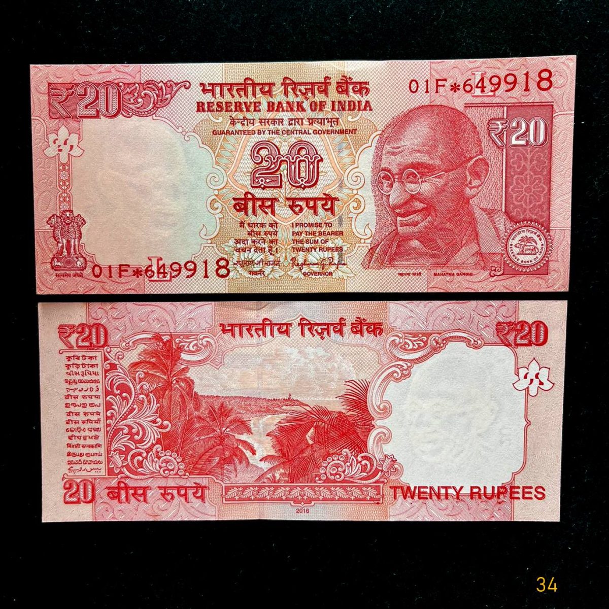 ES34 – Rs 20 India Banknote Star Replacement Issue 01F INSET L 2016 Limited Issue