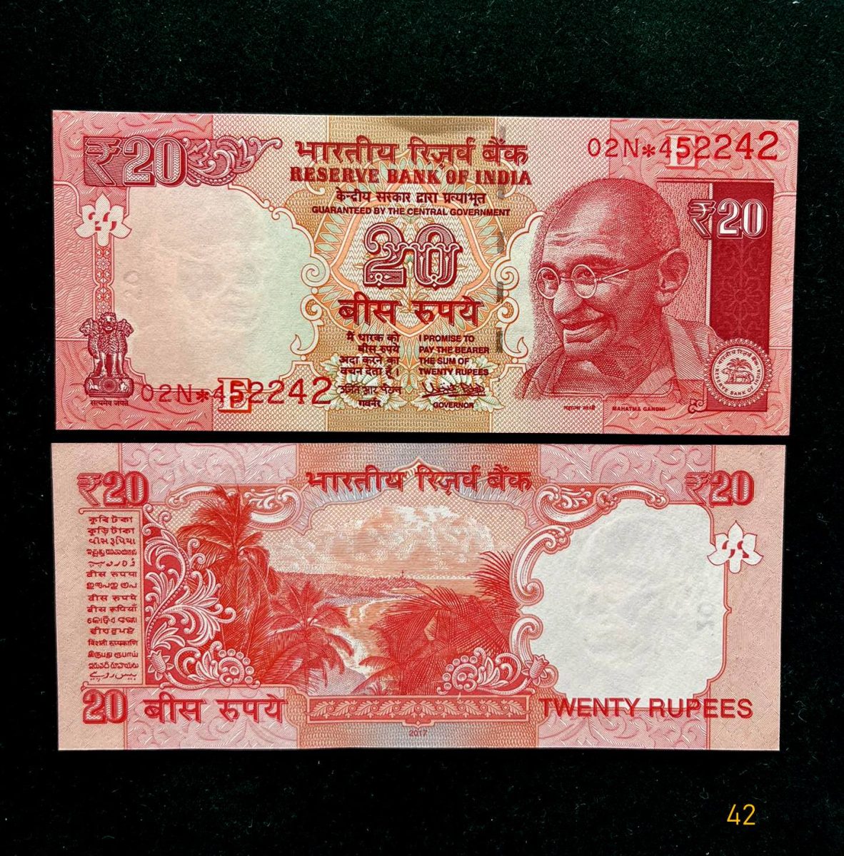 ES42 Rs 20 India Banknote Star Replacement Issue 02N INSET E 2017 Limited Issue