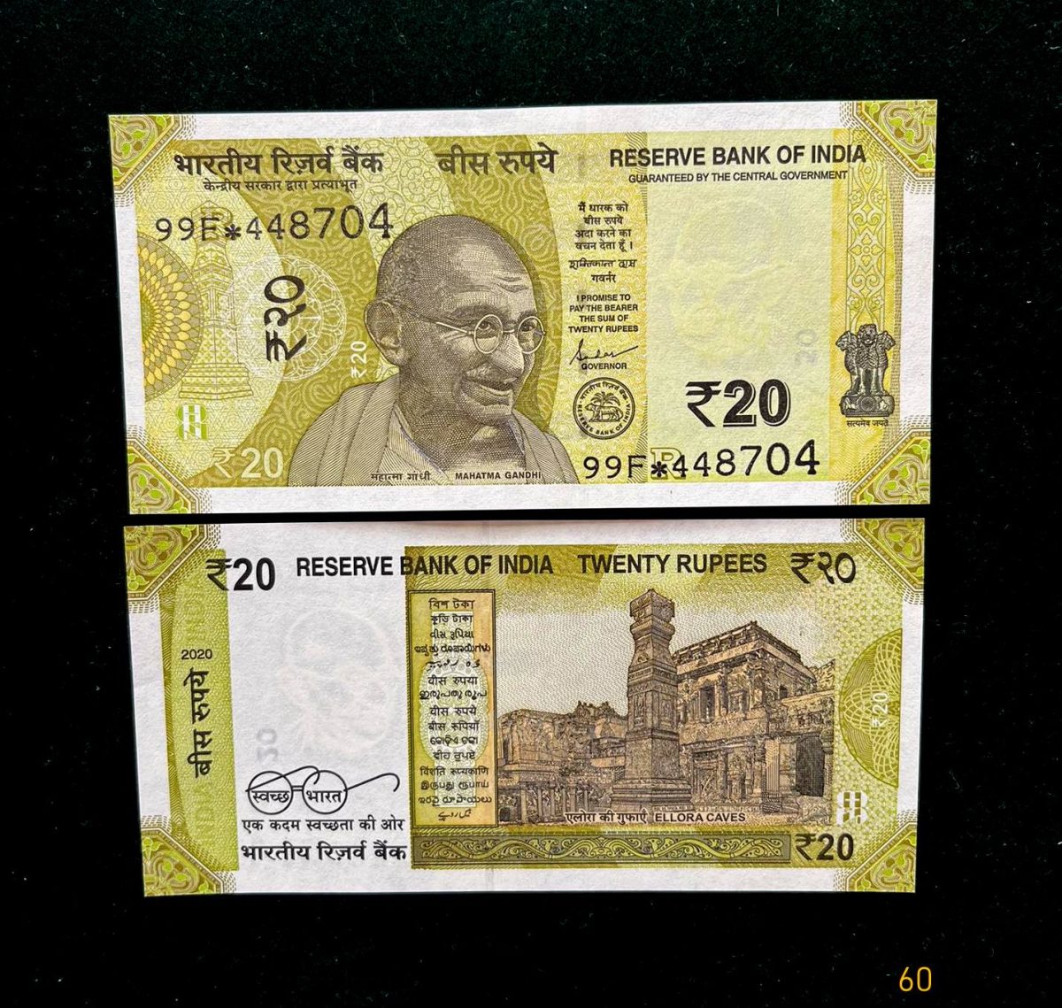 ES60 – Rs 20 India Banknote Star Replacement Issue 99F INSET R 2020 Limited Issue