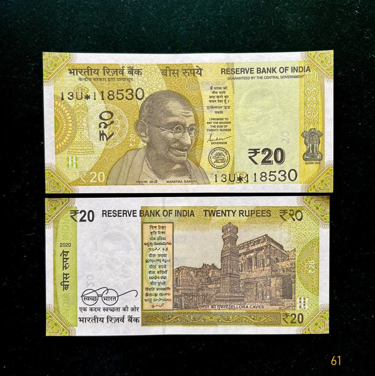 ES61 – Rs 20 India Banknote Star Replacement Issue 13U INSET R 2020 Limited Issue