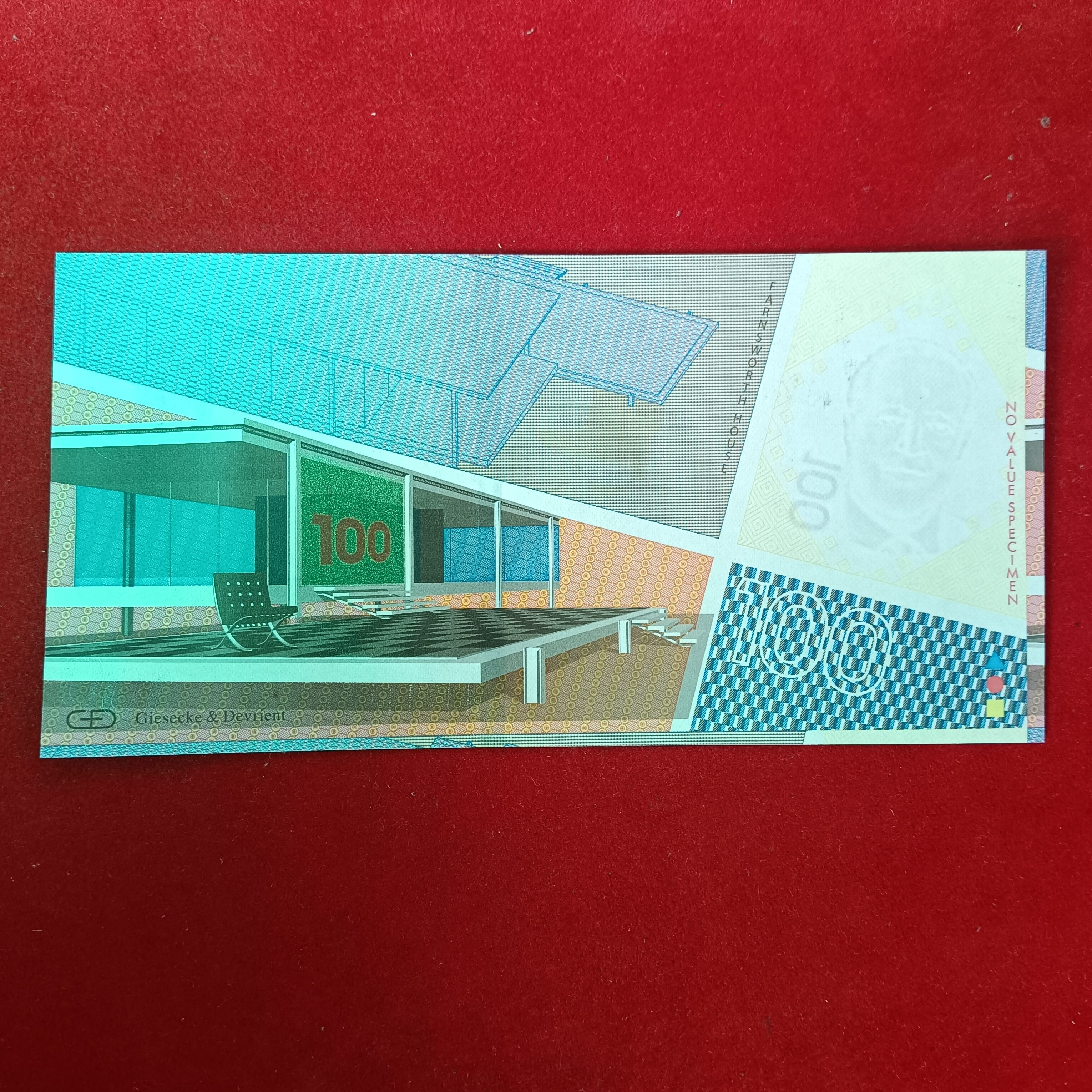 - Extremely Rare G&D Test Note G&D Germany – “Bauhaus 100” Intaglio SPECIMEN Proof Note