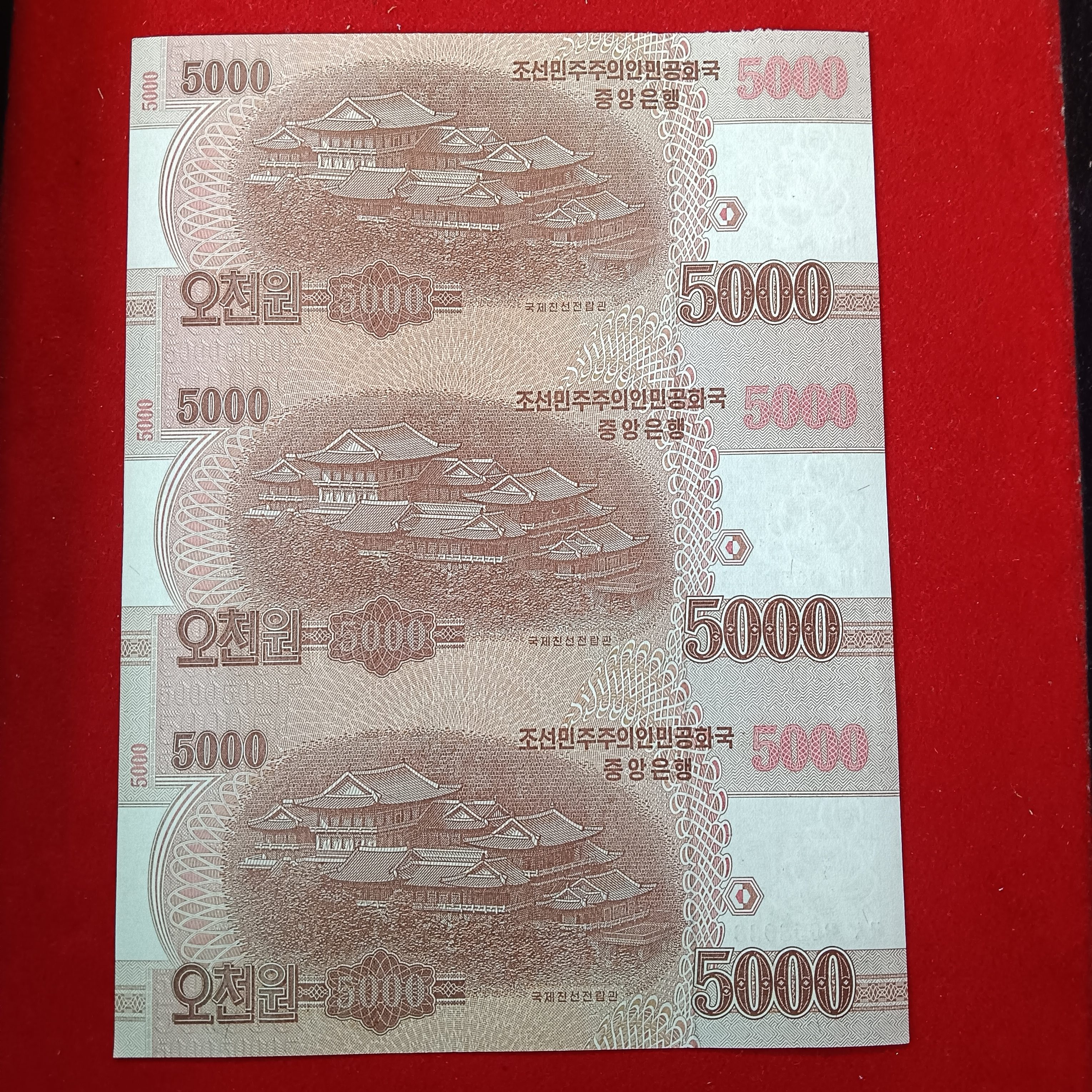 - Extremely Rare North Korea 5000 Won Uncut Note Sheet Gem Bunc Condition