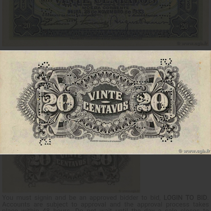 - Extremely Rare NOTE Portuguese Mogambique 20 Vinte Centavos Issue 1933 Year Gem Unc Condition