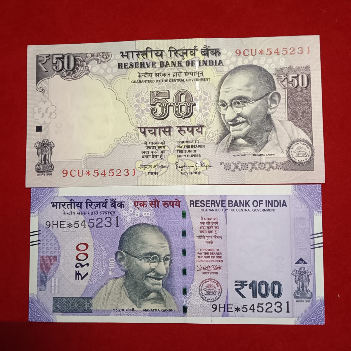 - Extremely Rare Note Set Pair of Stair Or Same Serial Numbers 50 Old or 100 Rs Gem Bunc Condition Notes 2 Pcs Given