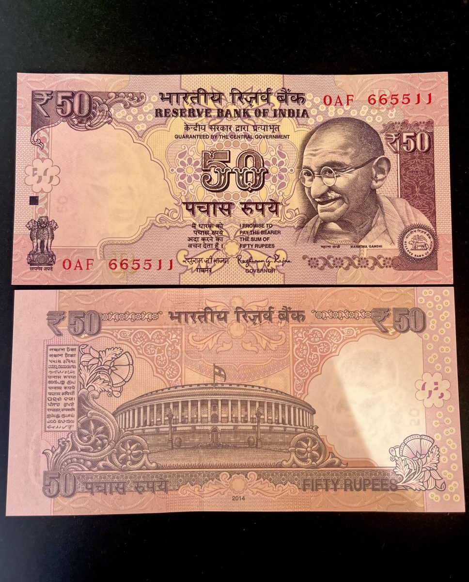 F – 62 Rs 50 India Banknote Signature series Signed by RAGHURAM RAJAN Inset R 2014 issue