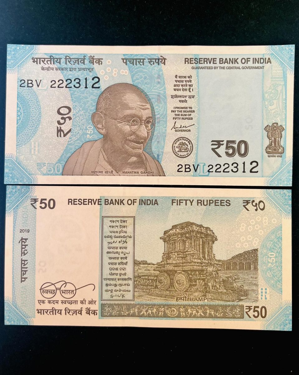 F 84 Rs 50 India Banknote Signature series Signed by SHAKTI KANTA DAS Inset PLAIN 2019 issue