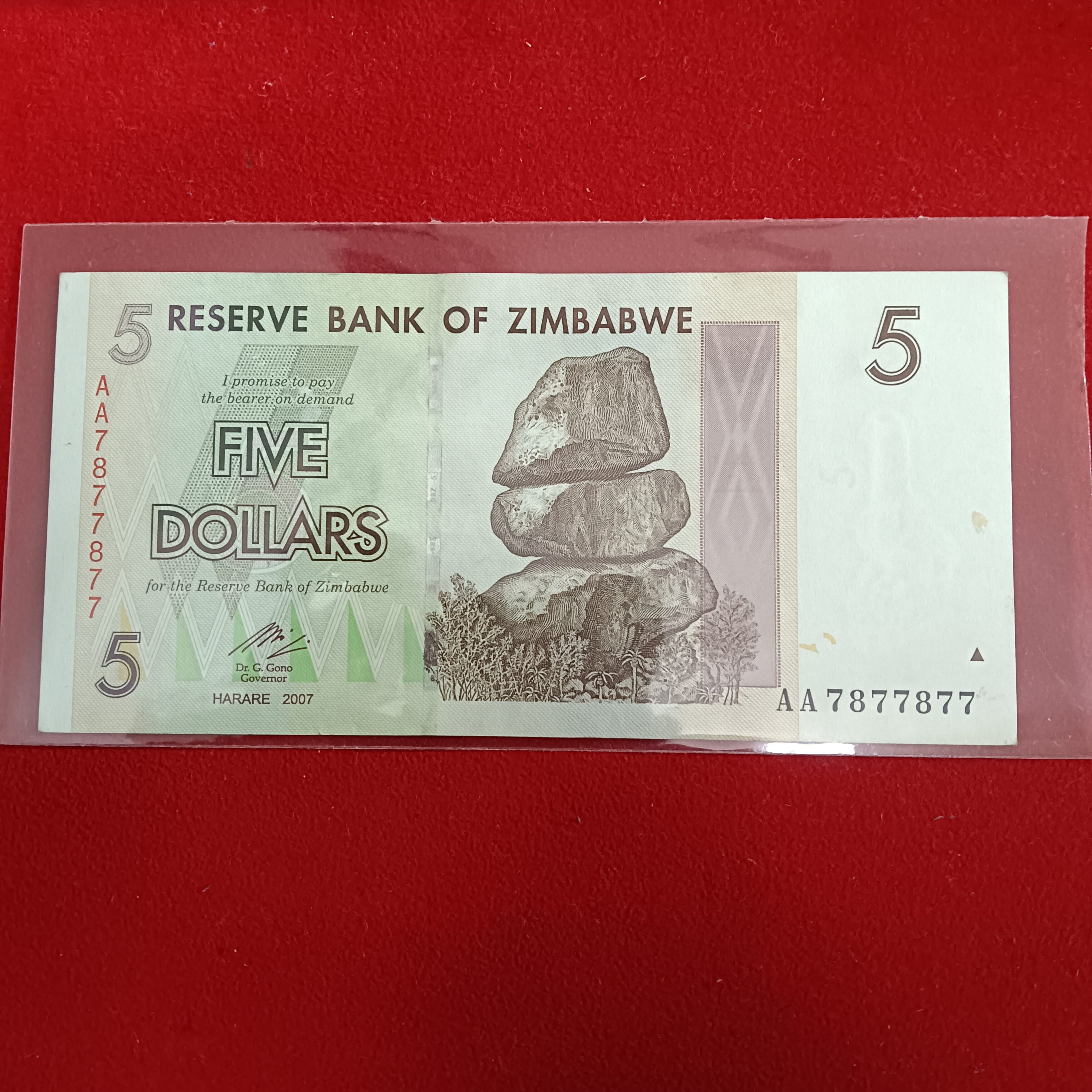 - Five Dollars Reserve Bank of Zimbabwe Governor Dr.G.Gono Year 2007 Unc Condition