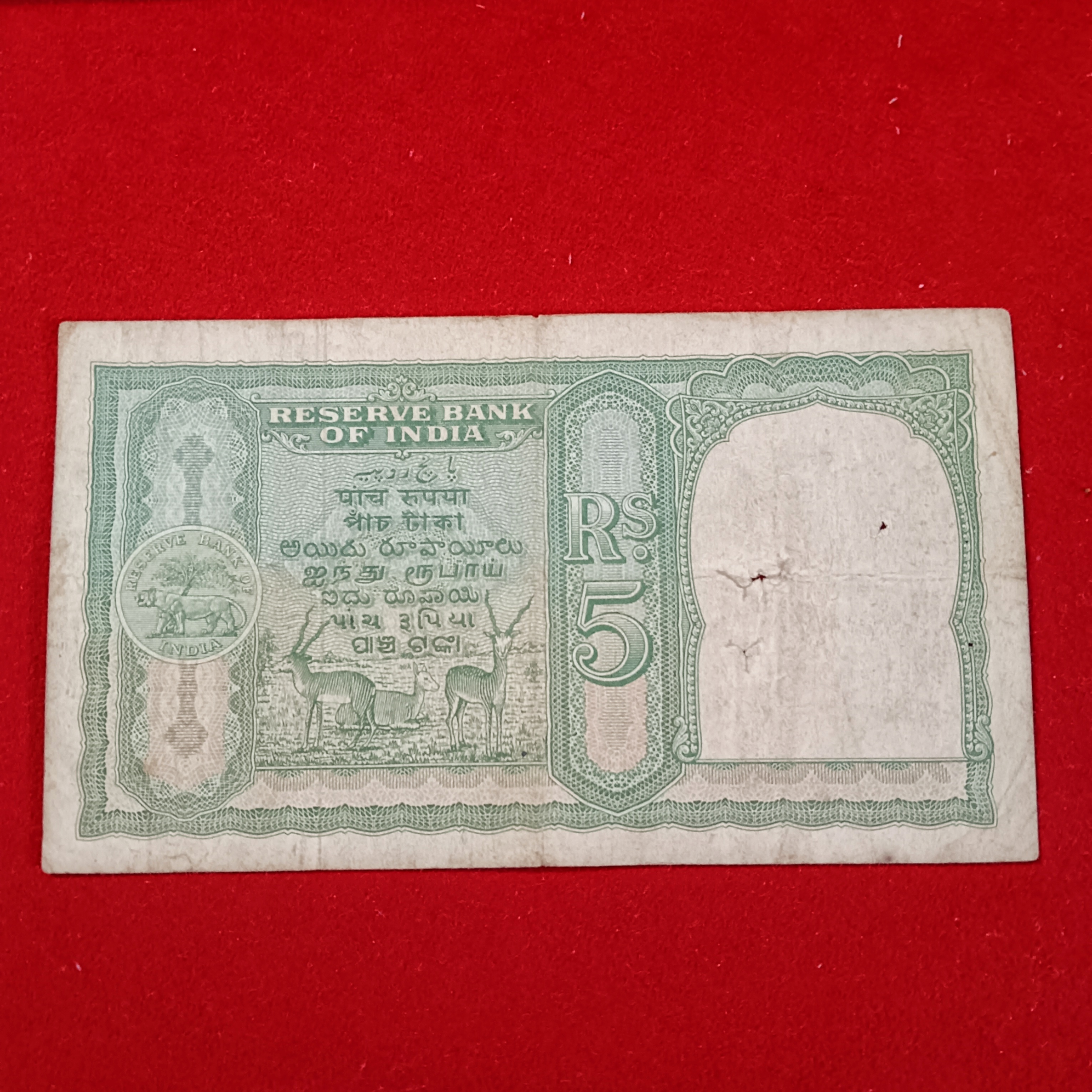 Five Rs 3 Deer Note Ex Rare Note C1 Issue Governor B.Rama Rao Serial No 759072 A15