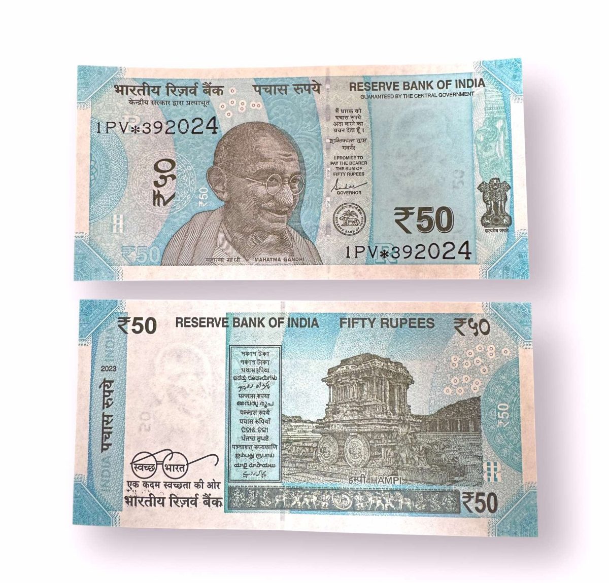 FS 90 Rs 50 India Banknote Inset R Star Issue 2023 Prefix 1PV Unique and Rare