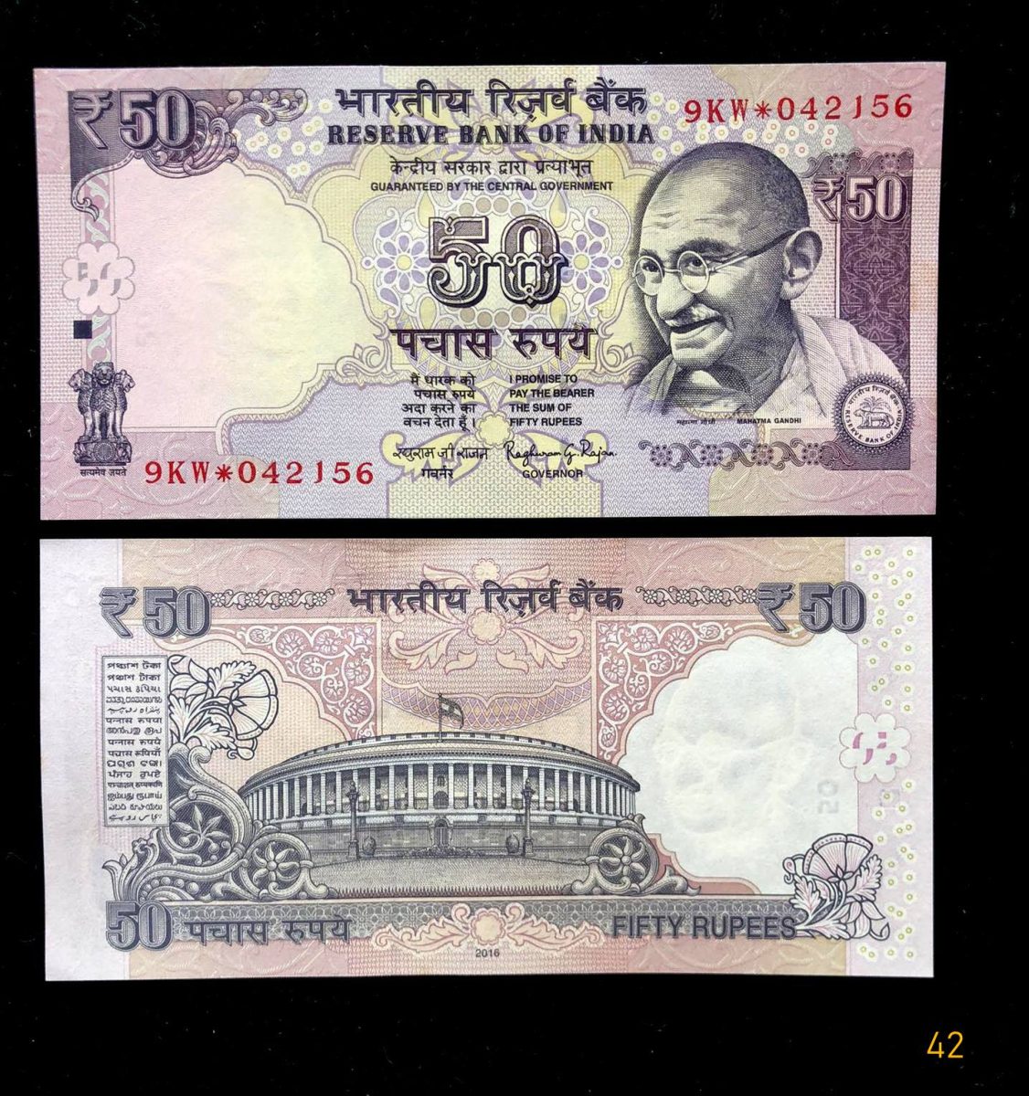 FS42 – Rs 50 India Banknote Star Replacement Issue 9KW INSET PLAIN 2016 Limited Issue