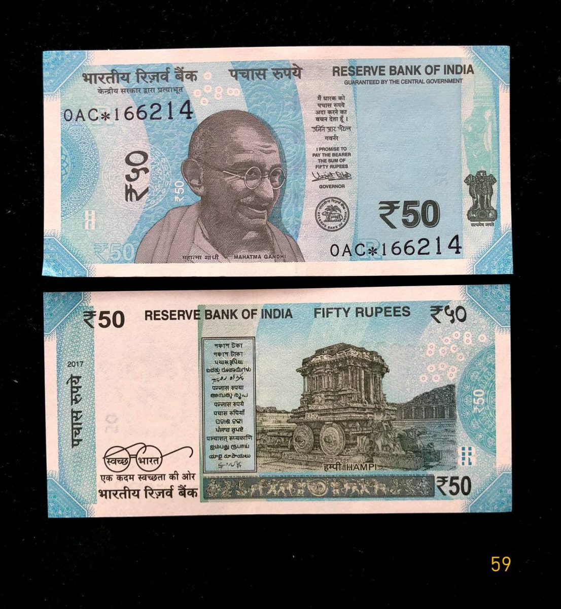 FS59 – Rs 50 India Banknote Star Replacement Issue 0AC INSET R 2017 Limited Issue