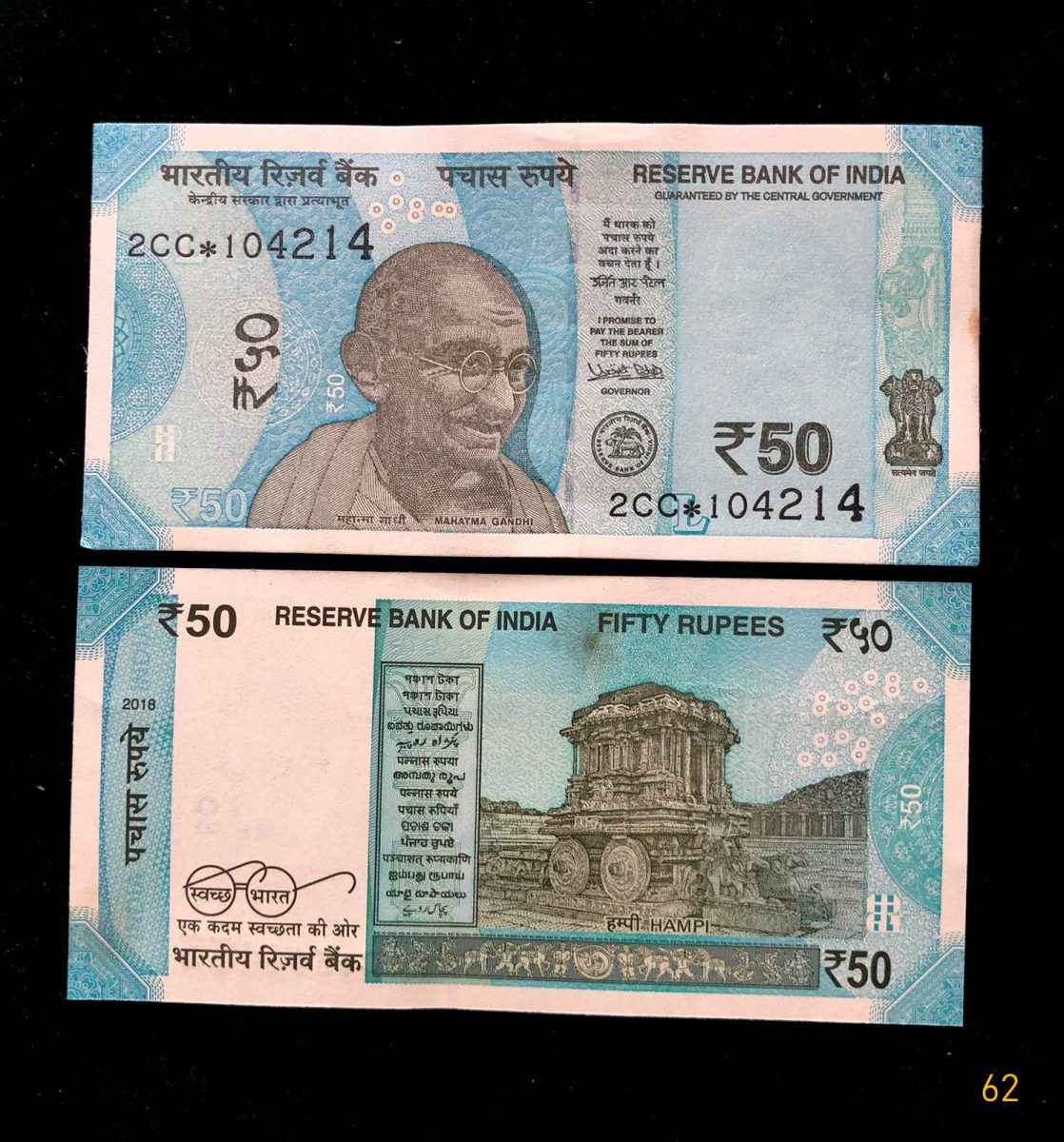 FS62 – Rs 50 India Banknote Star Replacement Issue 2CC INSET L 2018 Limited Issue