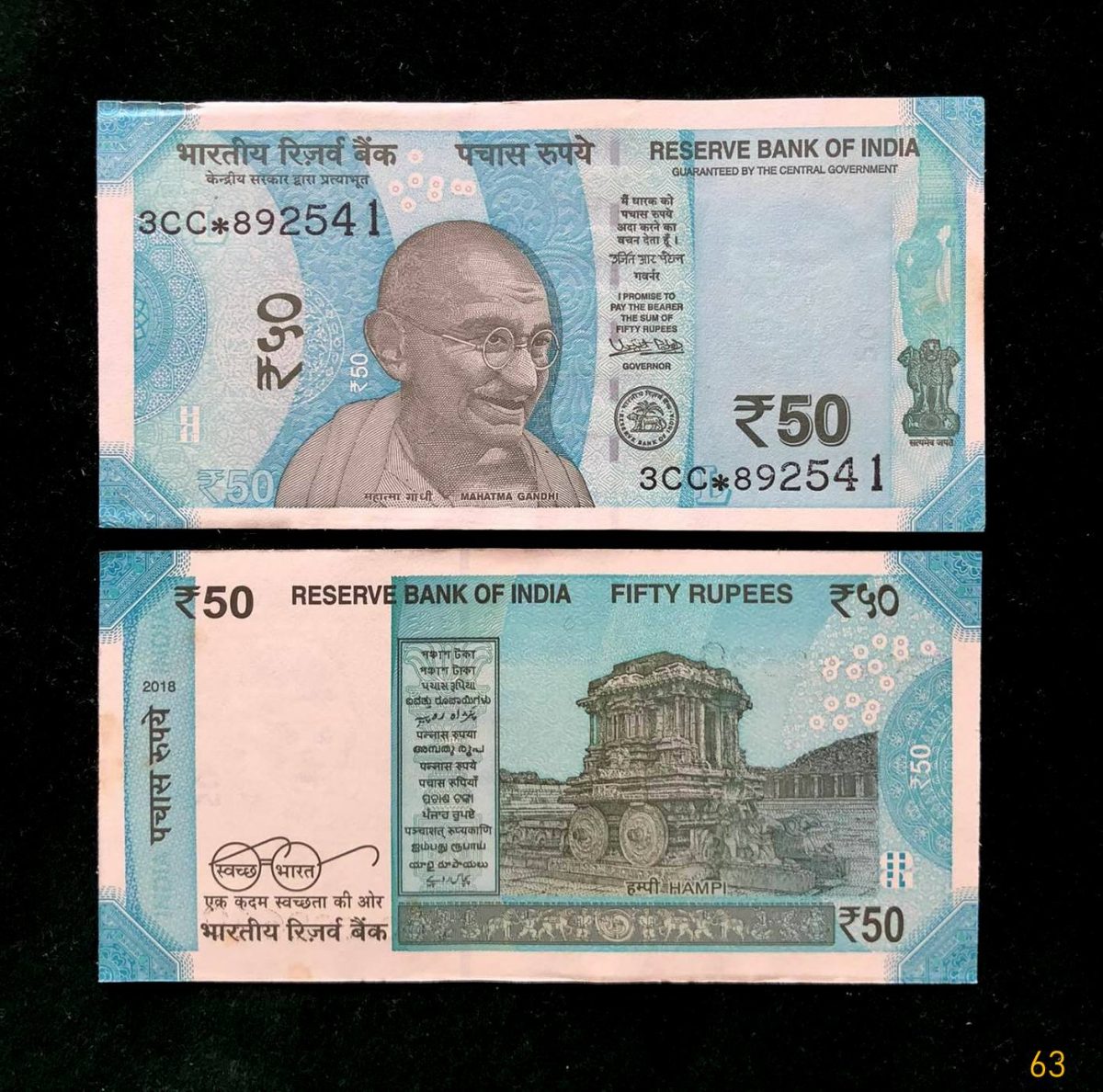 FS63 – Rs 50 India Banknote Star Replacement Issue 3CC INSET L 2018 Limited Issue
