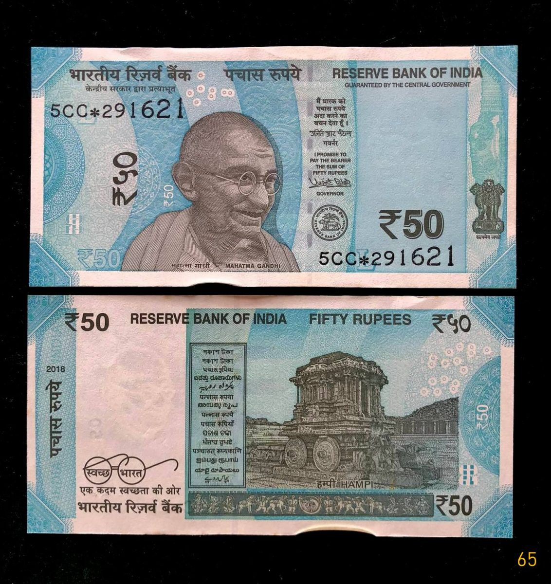 FS65 – Rs 50 India Banknote Star Replacement Issue 5CC INSET L 2018 Limited Issue