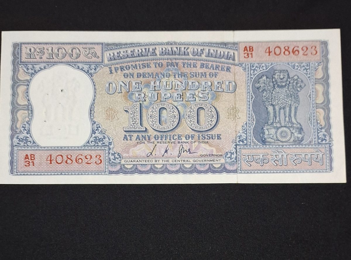 The G-9 100 Rupee Note L.K. Jha Diamond Issue in UNC condition with pinholes is a rare and fascinating collectible piece for numismatists and banknote enthusiasts. Issued with the serial number 408623, this note holds historical significance as it features the distinguished signature of L.K. Jha, the former Governor of the Reserve Bank of India. The note’s design showcases intricate details and a diamond watermark, adding to its allure.