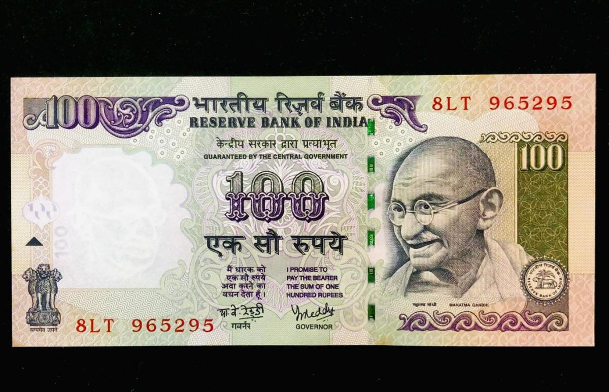 G56 – Rs 100/- India Banknote Signature series Signed by Y.V.REDDY Inset PLAIN 2003-2004 Issue