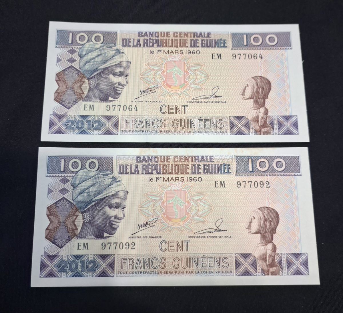GUINEE 100 CENTS FRANCS GEM UNC CONDITION 2 NOTE SET