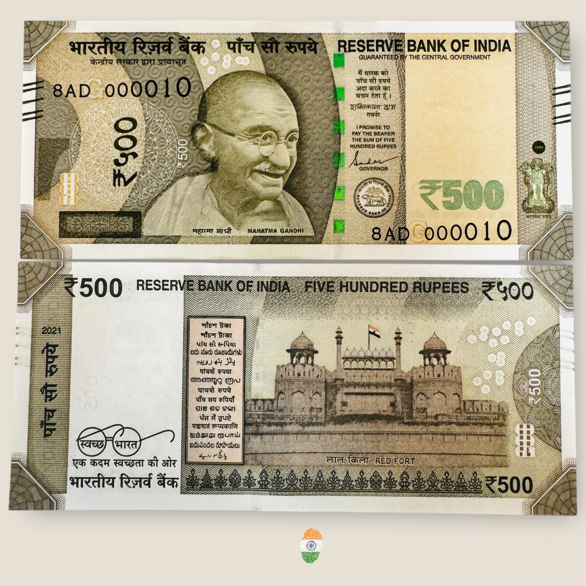 I102 Rs 500 India Banknote Signature Series Signed by Shaktikant Das Inset G 2021 Issue UNC Unique and Rare