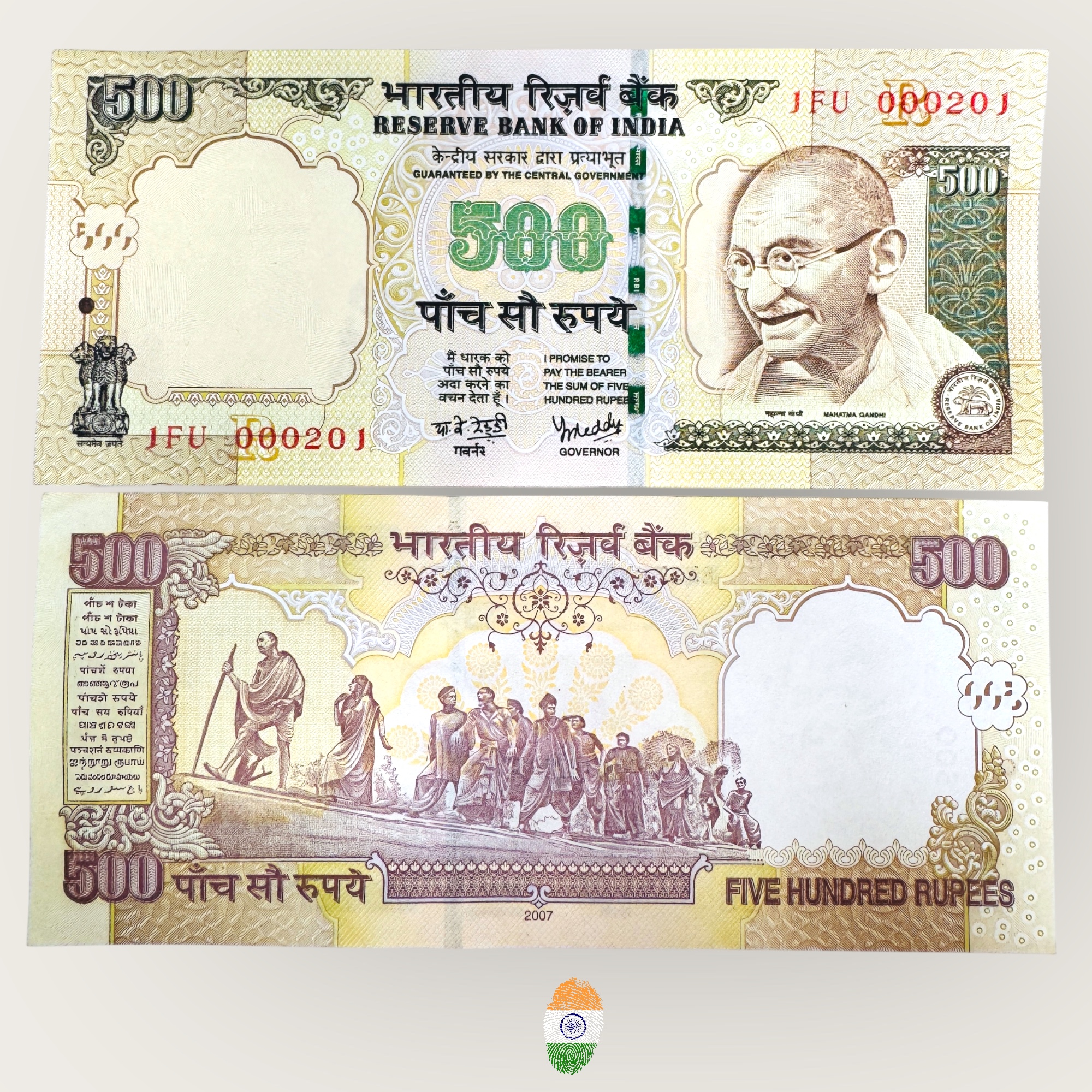 I26 Rs 500 India Banknote Signature Series Signed by Y V Reddy Inset R 2007 Issue UNC Unique and Rare