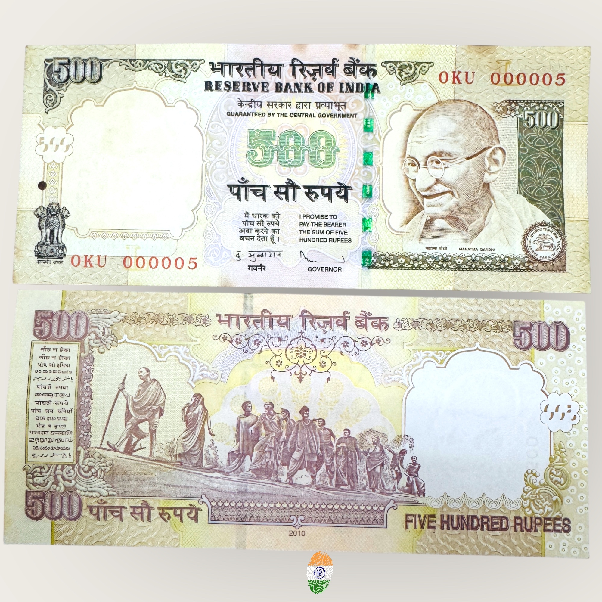 I37 Rs 500 India Banknote Signature Series Signed by Subharao Inset L 2010 Issue UNC Unique and Rare
