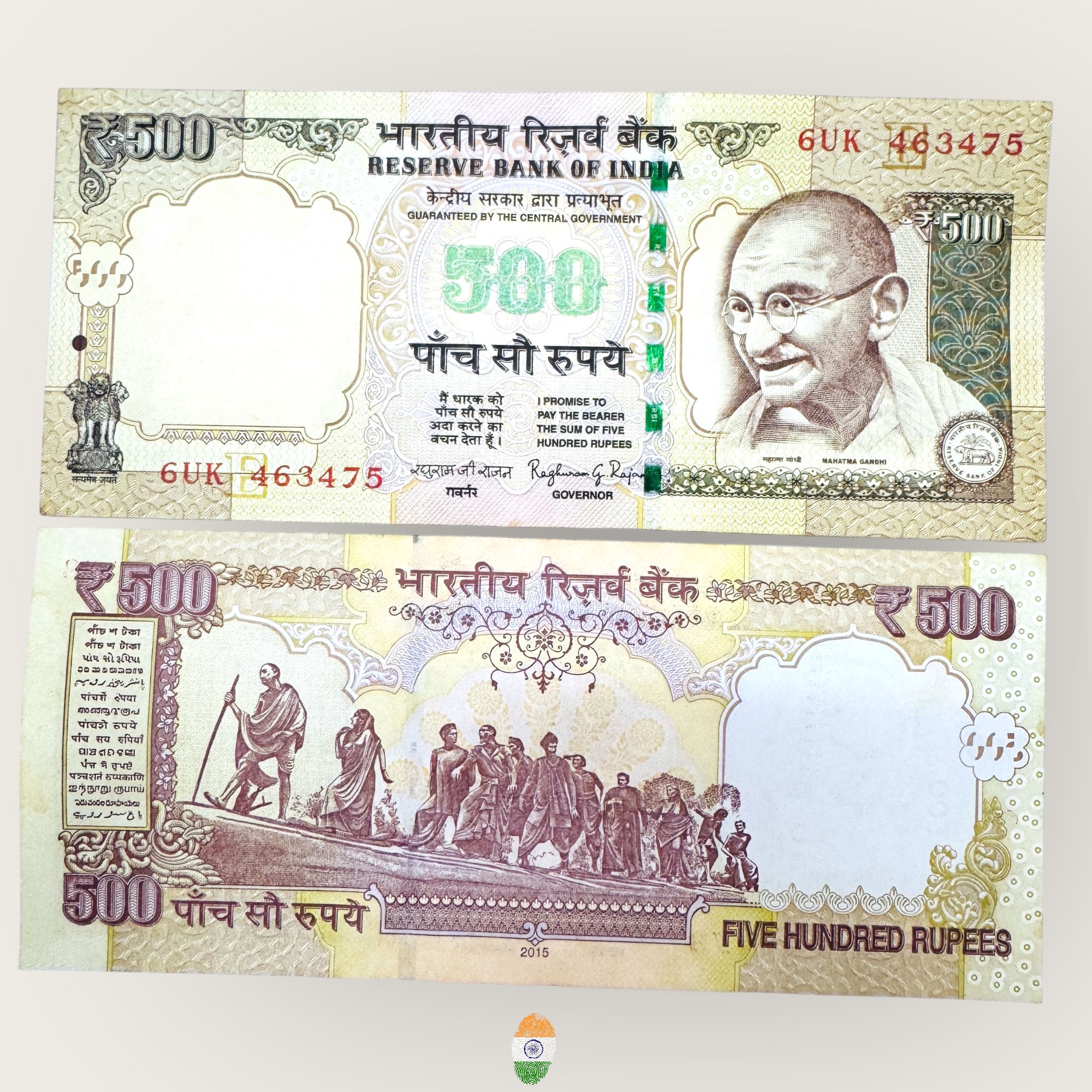 I59 Rs 500 India Banknote Signature Series Signed by Raghuram Rajan Inset R 2015 Issue UNC Unique and Rare