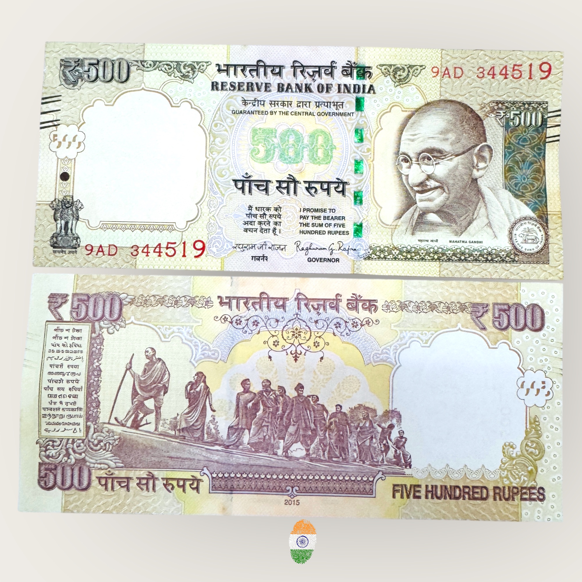 I61 Rs 500 India Banknote Signature Series Signed by Raghuram Rajan Inset Plain 2015 Telescopic Braille Issue UNC Unique and Rare