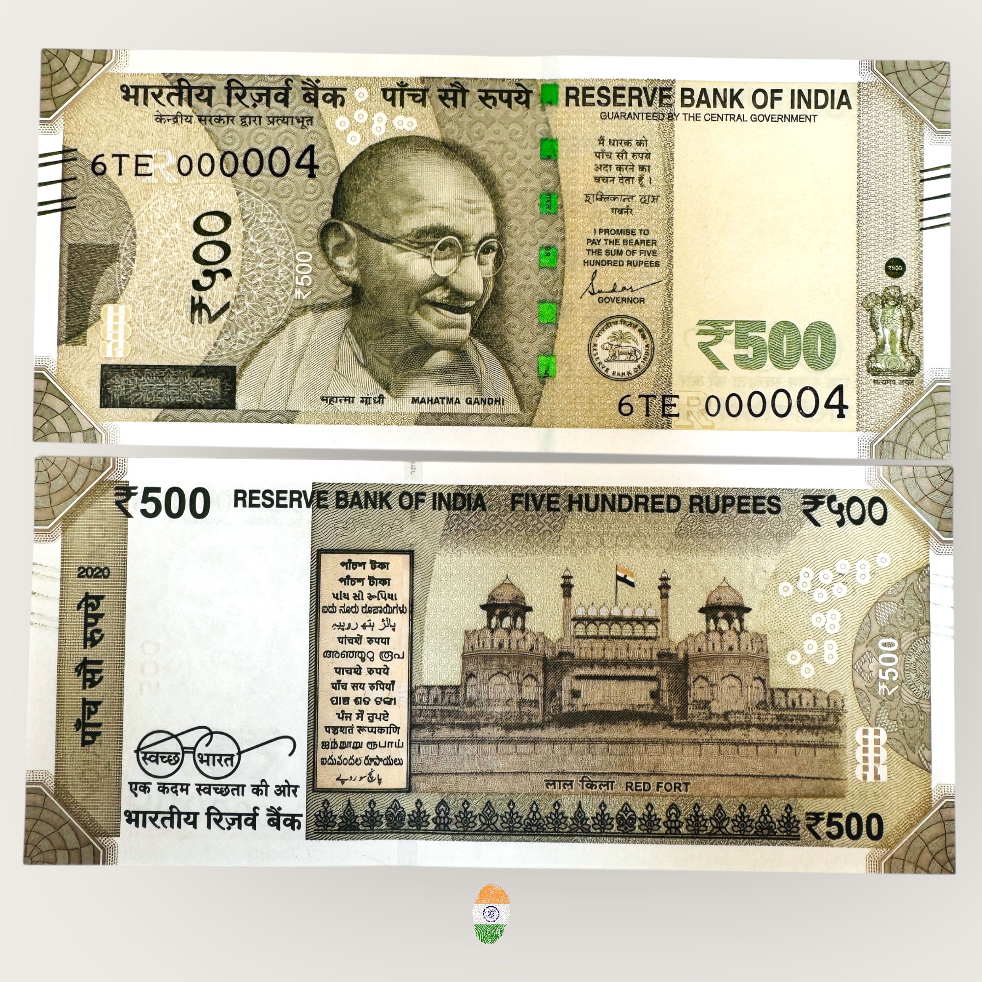 I96 Rs 500 India Banknote Signature Series Signed by Shaktikant Das Inset R 2020 Issue UNC Unique and Rare
