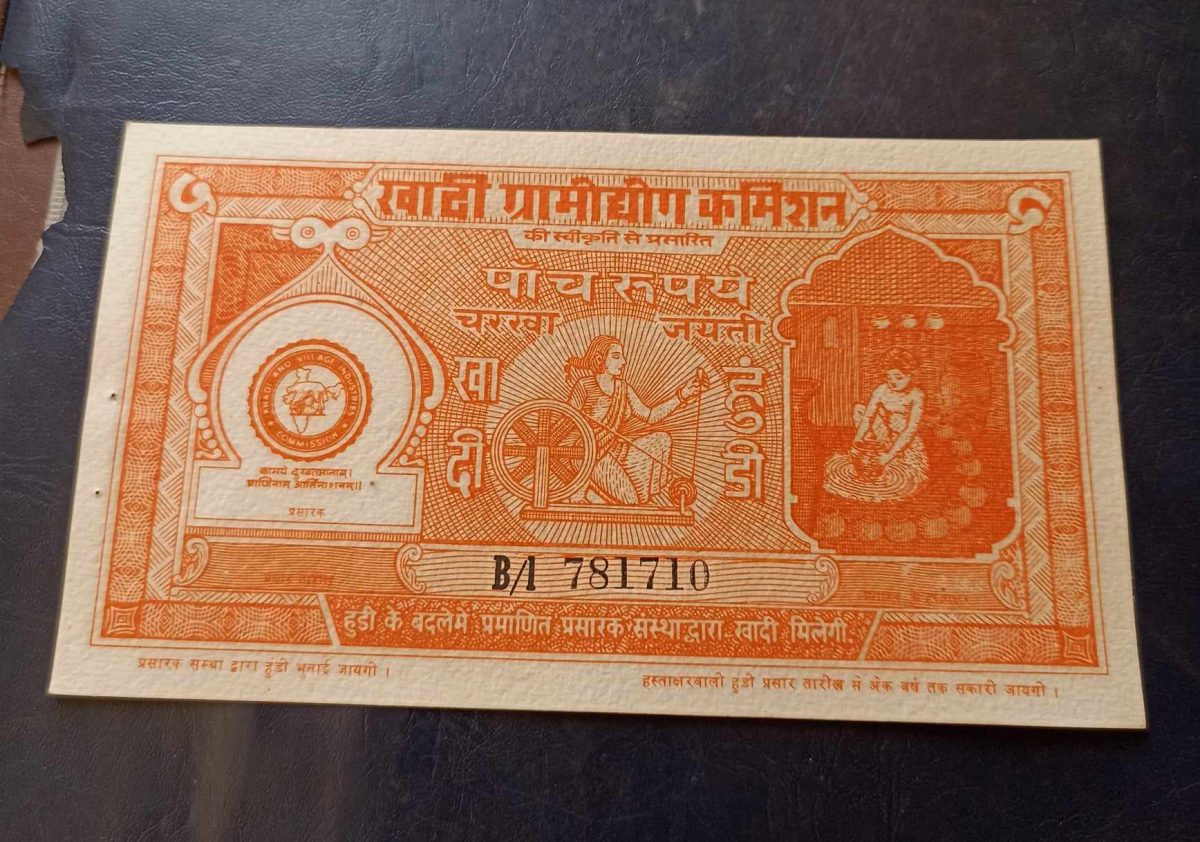 🏷️ Rare 5 ₹ Khadi hundi note issued by Mahatma Gandhi