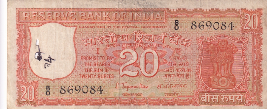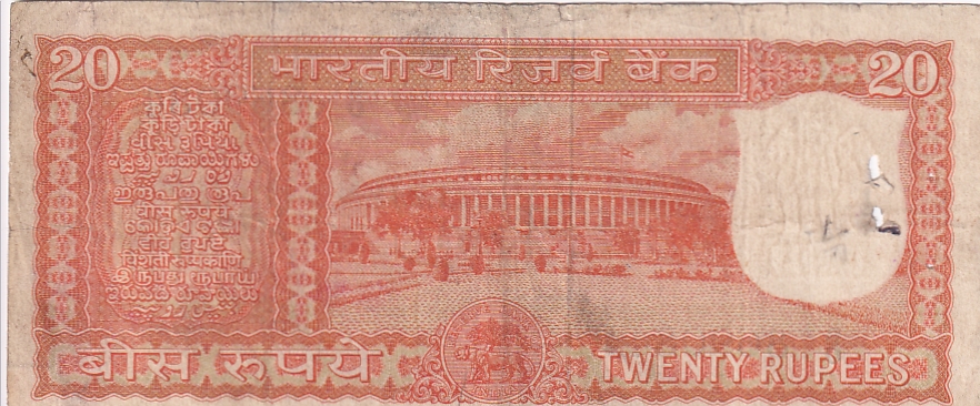 India 20 Rupees Orange Color Parliament Issue Old Note #1