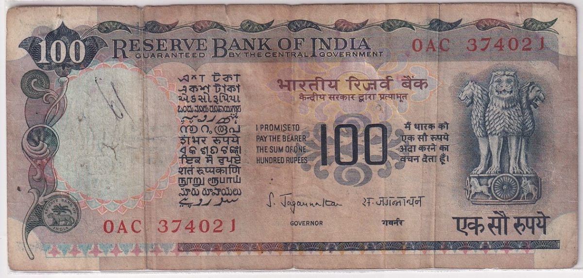 India Cobalt Issue 100 Rupees S Jagannathan Ex Rare Note #1