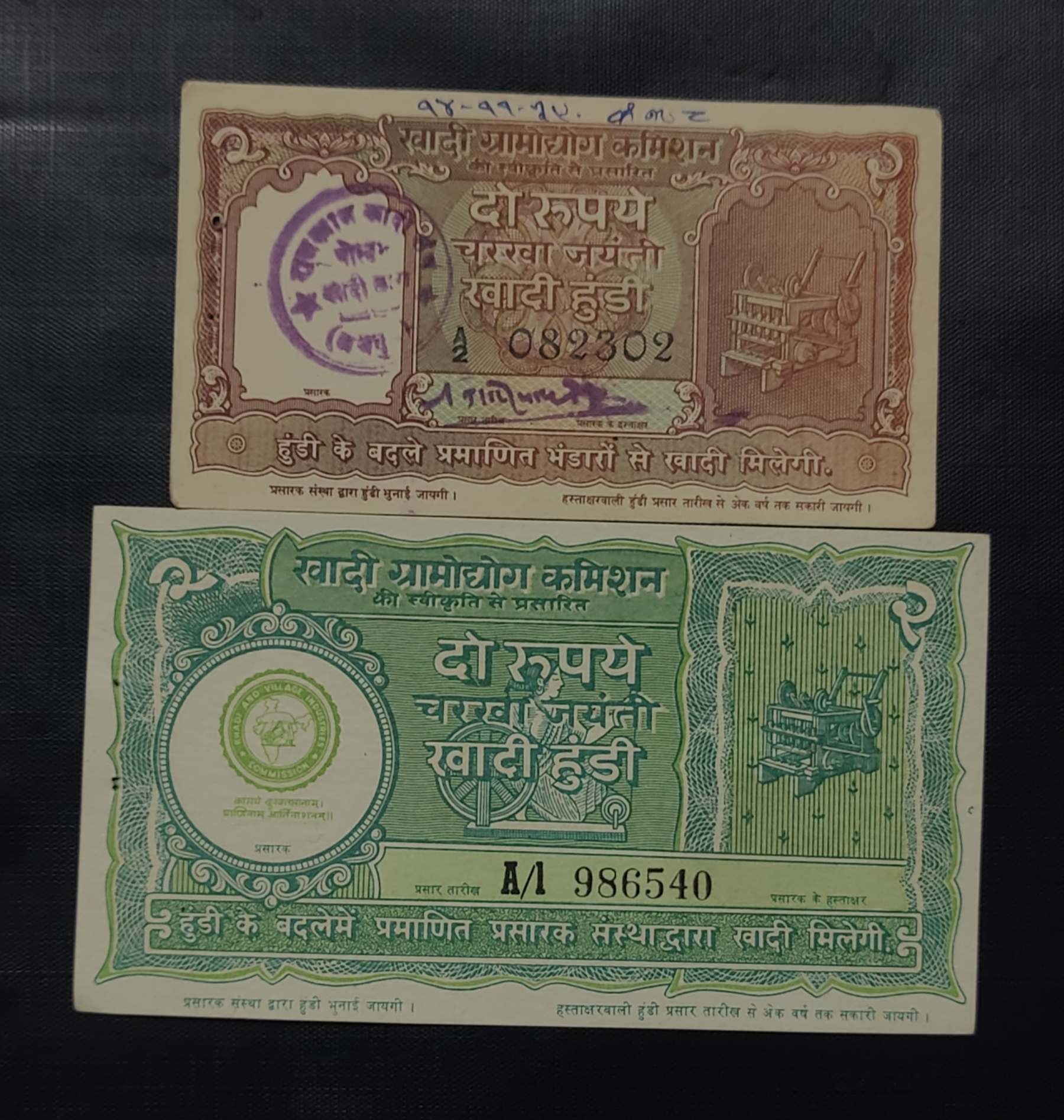 INDIA NOTE 🇮🇳 2 ₹ Khadi hundi 💸💸 NOTE ISSUE BY MAHATMA GANDHI UNC 💵💵👌👌💸 HAND MADE PAPER Conditions as image 2 piece given Same and similar piece available