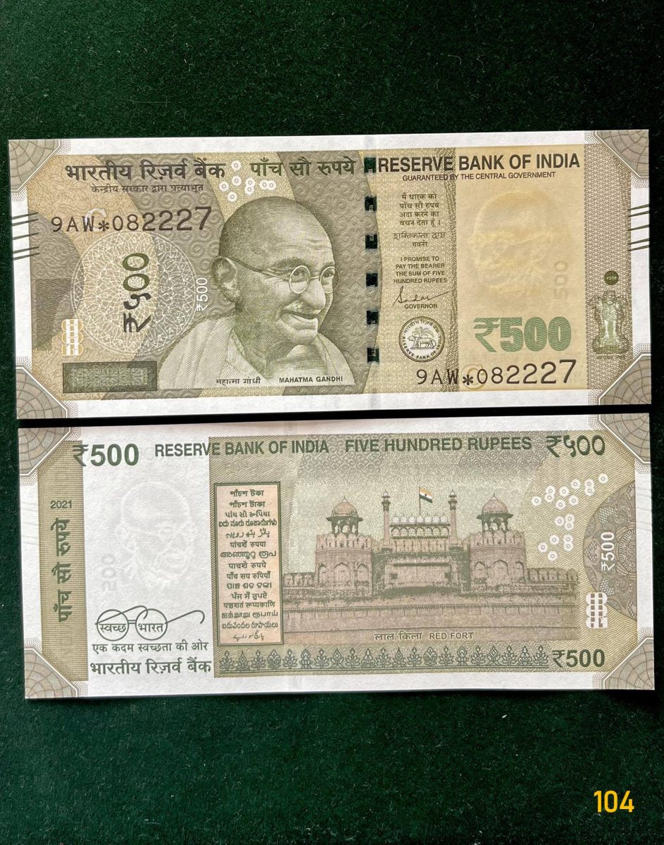 IS104 – Rs 500 India Banknote Star Replacement Issue 9AW INSET C 2021 Limited Issue