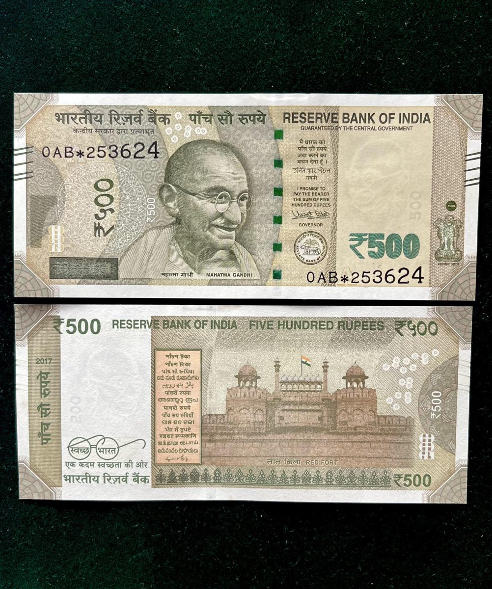 IS20 – Rs 500 India Banknote Star Replacement Issue 0AB Inset A 2017 Limited Issue