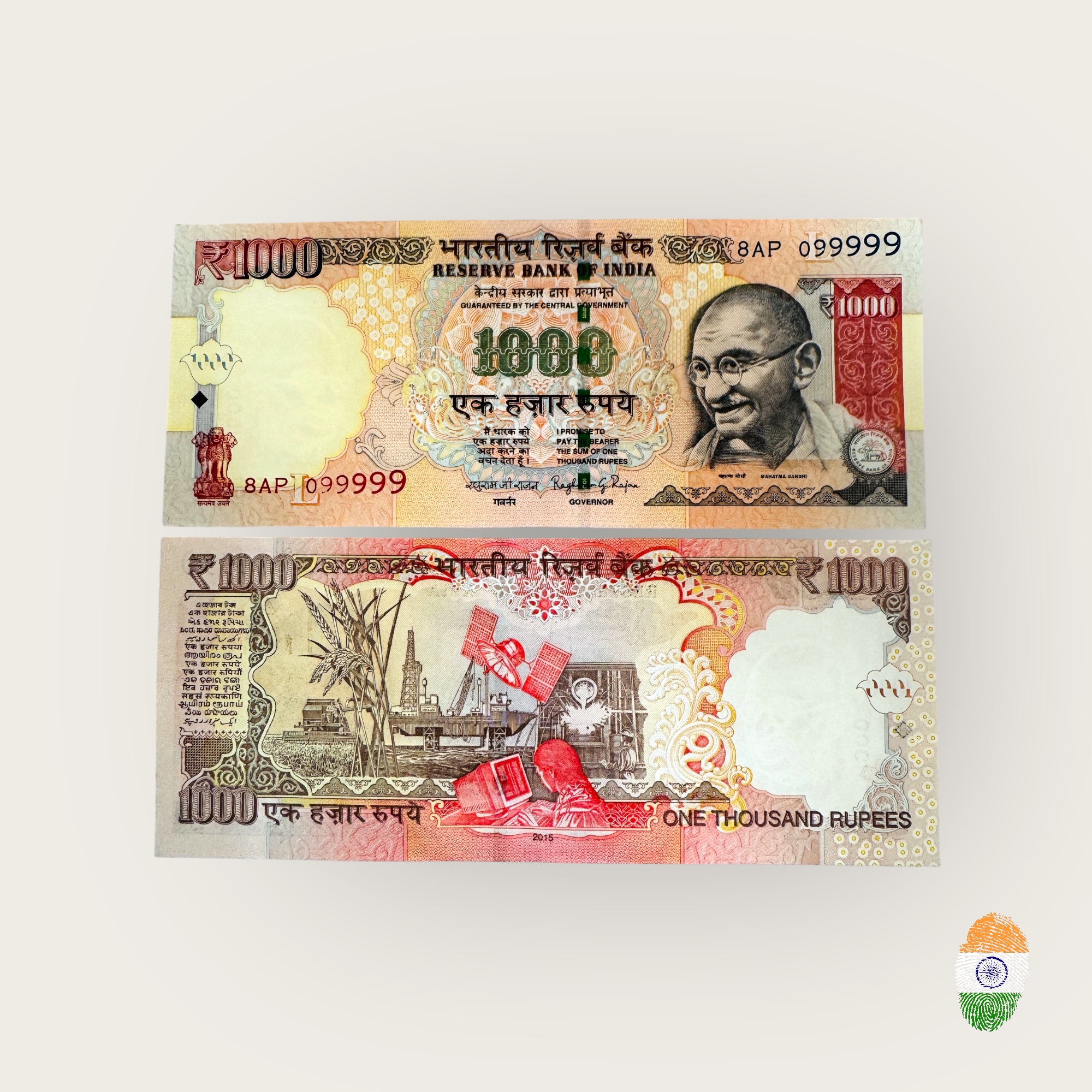 J51 Rs 1000 India Banknote Signature Series Raghuram Rajan Inset L Without Braille Telescope UNC Unique and Rare