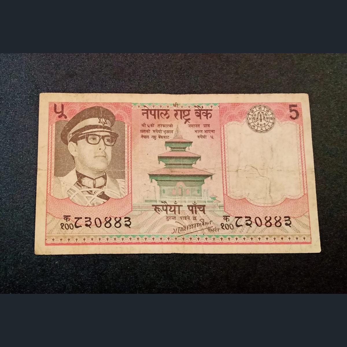 NEPAL Old Issue 5 Rupees “Pink Color” Yaak Notes **RARE** Used Condition.