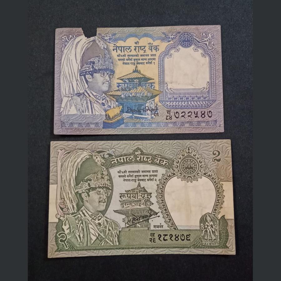 NEPAL Old Series One Rupee and Two Rupees Set **SCARE** Used Conditions.